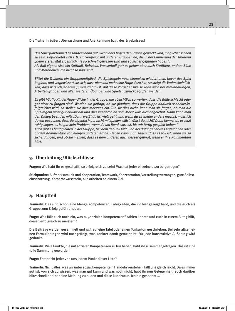 Dieses Buch stellt, nach Themen geordnet, eine Fülle an praxiserprobten Übungen und Materialien zur Verfügung, die je nach Bedarf als Training zusammengefügt oder zur Bearbeitung eines speziellen Themas separat genutzt werden können.