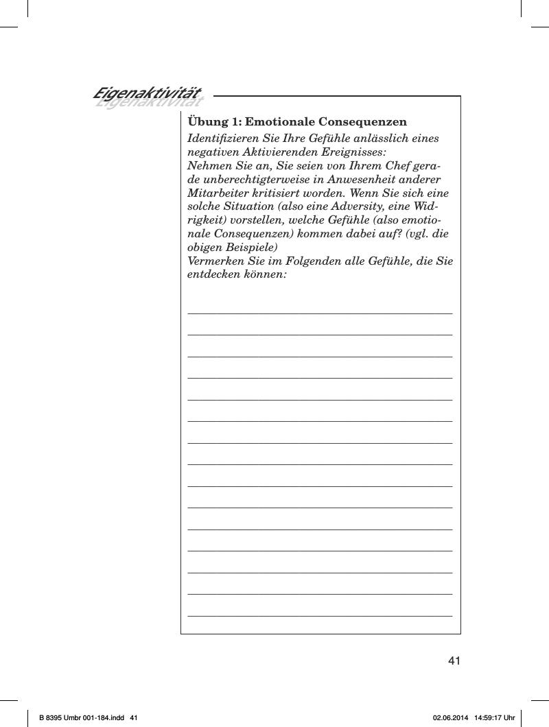 - hinderliche, negative Gefühle, beispielsweise Angstzustände, Ärger, Schuldgefühle, depressive Stimmungen u.a., in gesunde zielförderliche Gefühle umgewandelt werden können